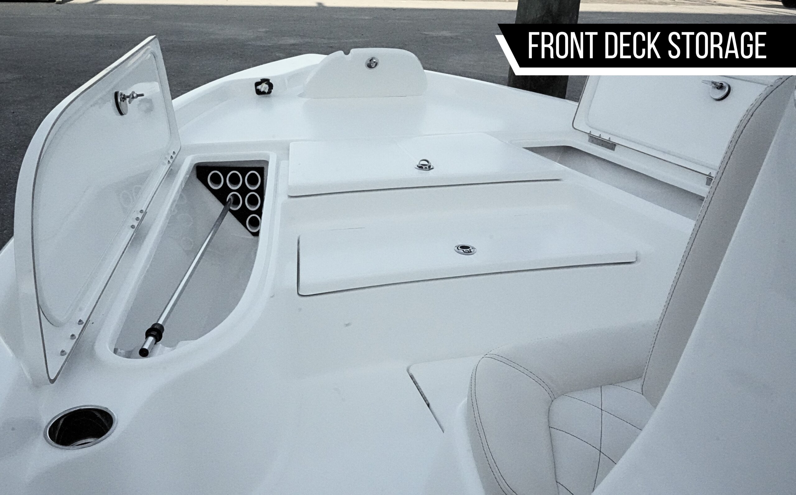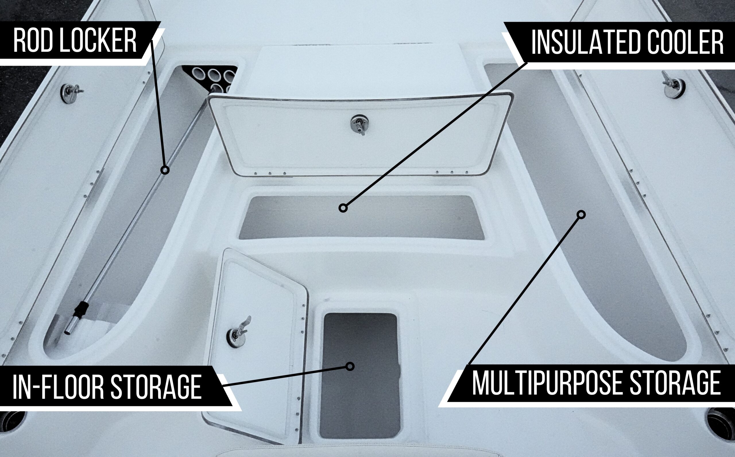 How much storage and what type of rod storage does this fishing boat offer?