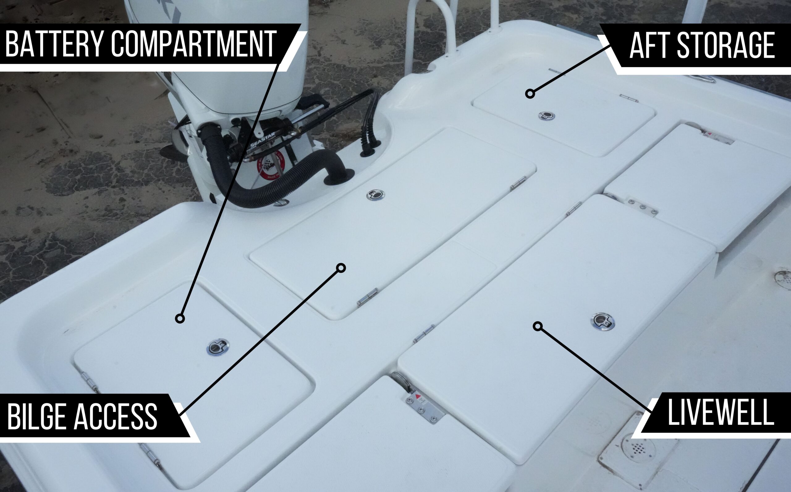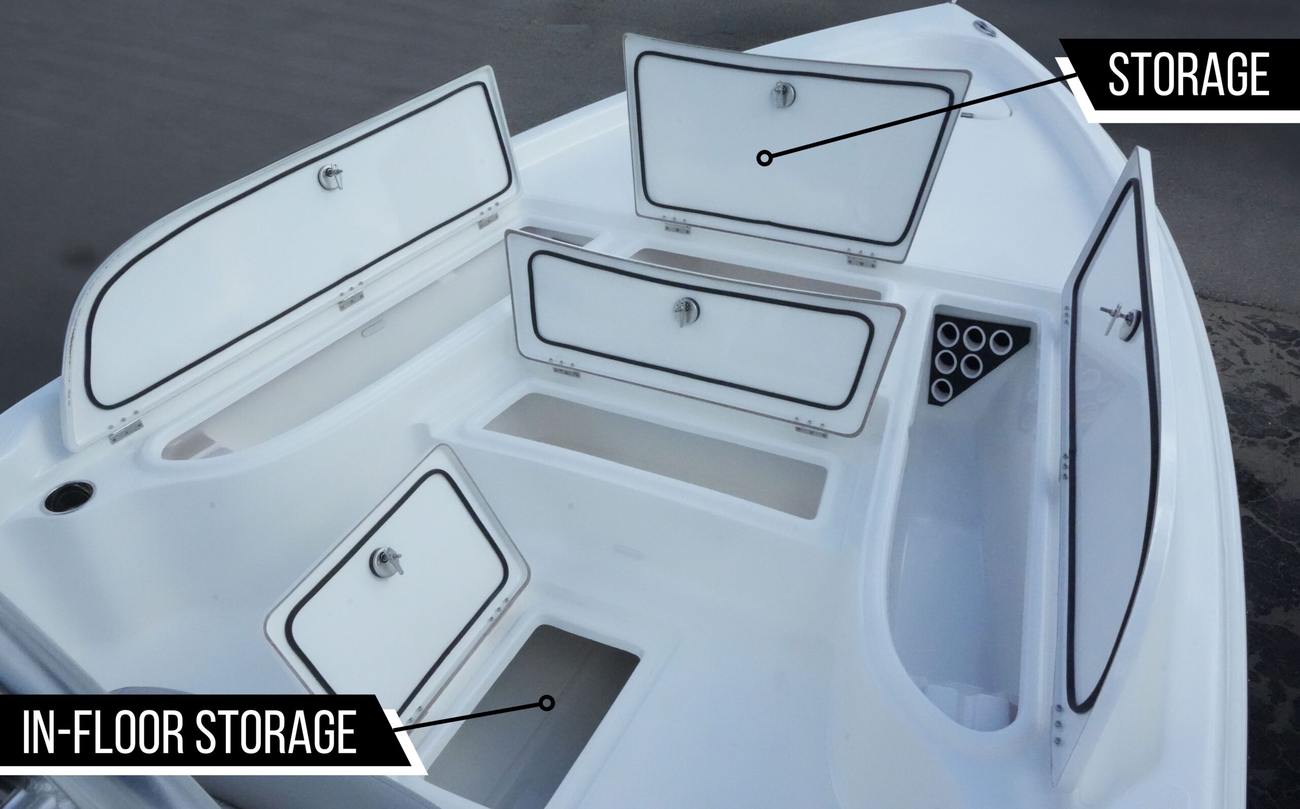 Front Storage Fish Box Molded Lower to Allow for Easy Step onto Deck