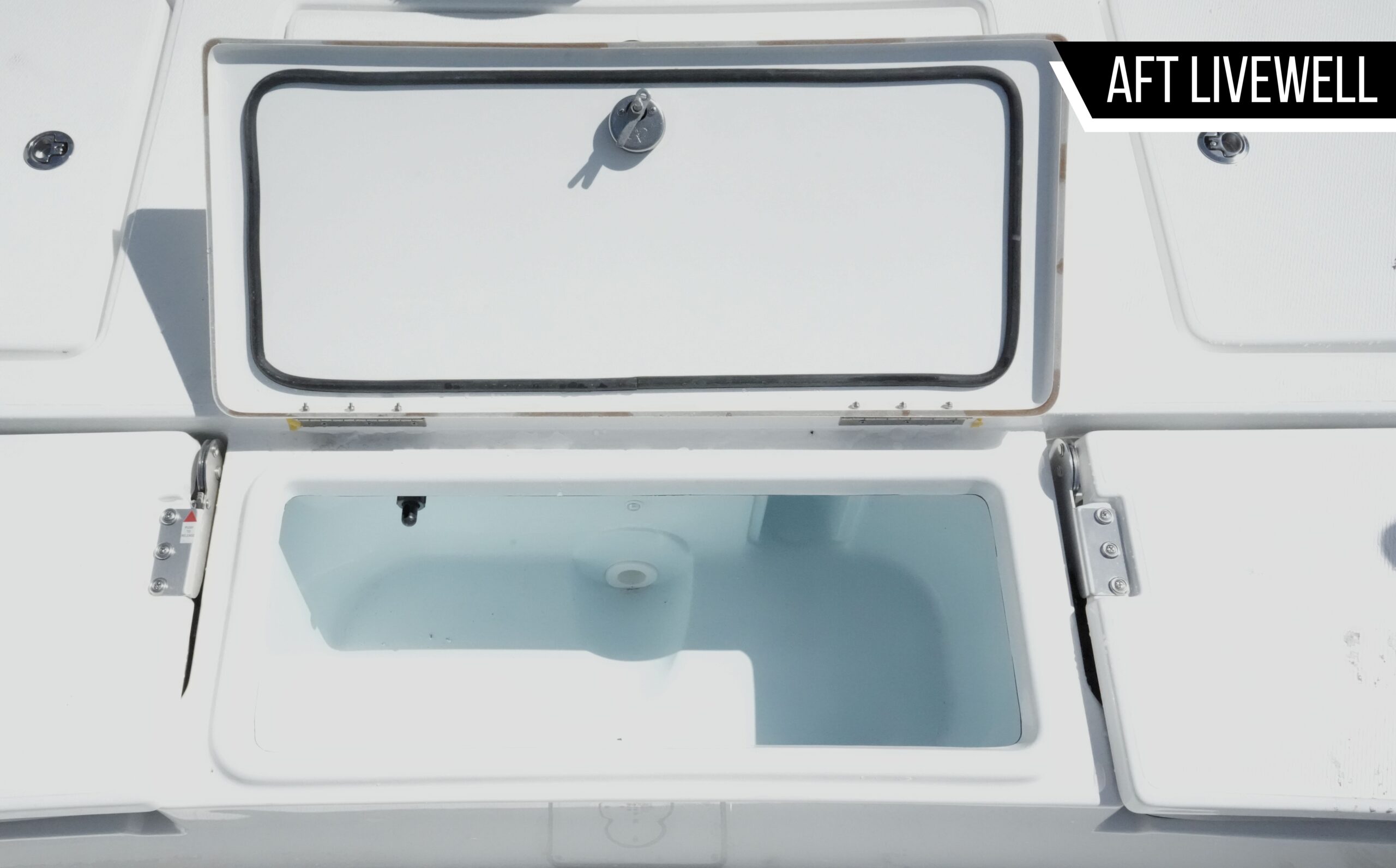 Livewell with rounded corners, recessed overflow, false magnetic wall and flush fittings