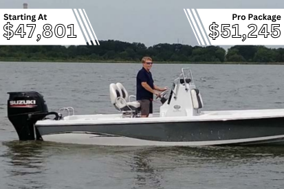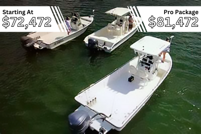 Each Pro Package is tailored to each of our models based on the most popular optional features chosen by previous customers. As such, what is included in each Pro Package changes from boat to boat. Some additions are more universal, such as hull color, while others are very dependent on the size and design of each vessel, such as depth finders. Below, we have broken down the Pro Package of each and every one of our bay boats sorted into their series line.