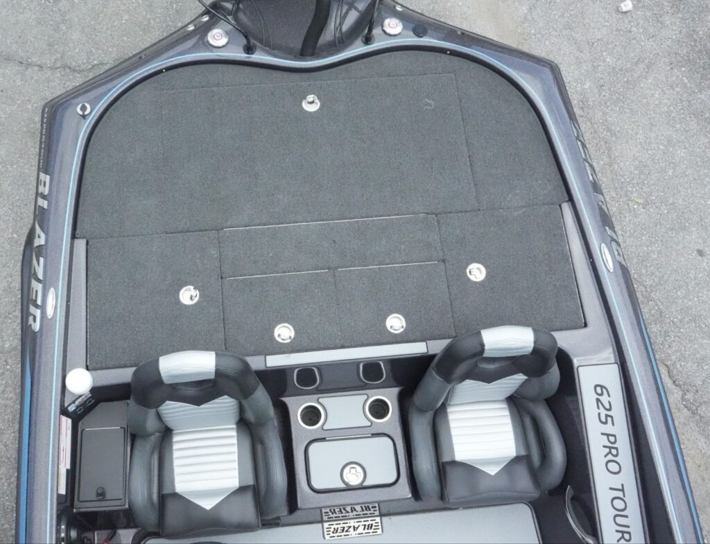 The 625 Pro Tour features a wider deck than its predecessor, the 625 Pro Elite. The front deck features four multipurpose storage compartments and a built-in cooler that doubles as a step from the central seating area onto the front deck. The center compartment is perfect for storing several tackle boxes, while the largest compartment is well-designed for storing fishing rods or other large equipment.