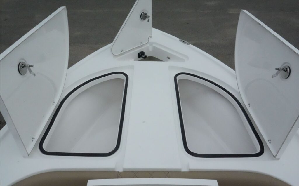 When closed, the insulated fish boxes double as deck space. Then, once you have fished your catch, it is easy to step down into the lounge area and access the compartments to store your fresh fish.