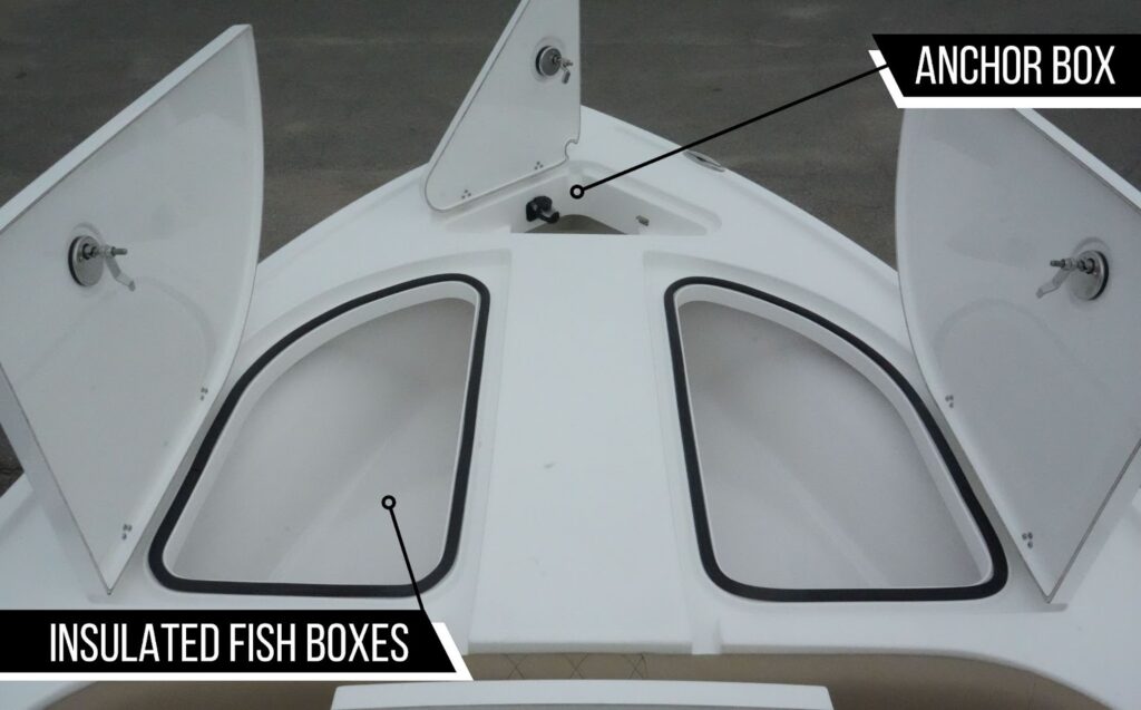 The Blazer Bay 2440 comes with two insulated fish boxes built into the front deck. These containers are designed to keep your fish fresh during a long day on the water. The insulation ensures that any ice or cooling packs you use will stay cold, keeping your fish fresher longer.